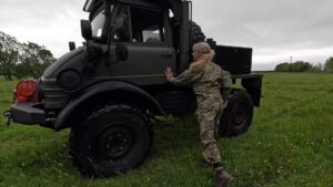 She still had her combat fatigues and boots upstairs in a cupboard; it just had to be done! So, she changed into old army gear, and then drove the Unimog to the start of her very own Jungle…
