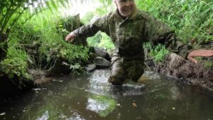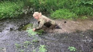 Essentially The Jungle required you to make your way across rough, overgrown, wet and boggy terrain without being seen or heard. This usually meant using streams and ditches as your route, and hence you got very wet and muddy in the process! That’s why it was her favourite. Now wouldn’t it be fun to do The Jungle again?