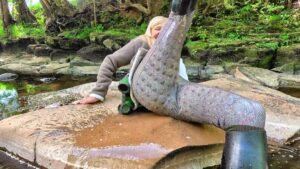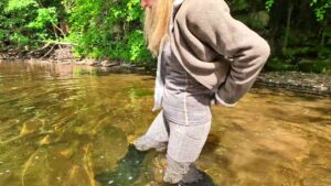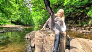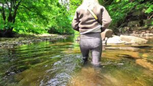 As she walked downstream, she inevitably kept edging towards the centre of the flow until, equally inevitably, the water breeched the tops of her rubber riding boots, trickled down inside and started to pool around her ankles. It felt delicious.