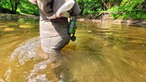 Pulling it on over her wet shirt, she put her binoculars back around her neck and splashed her way upstream towards her truck.
