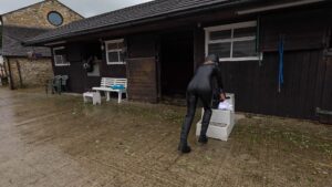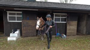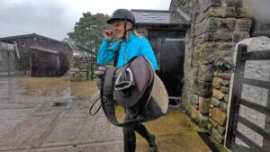 The weather was terrible! Storm Floris was battering the farm, with very high winds and torrential rain. But Andrea had not ridden her horse today and she always rides her every day. It was pretty clear that she was going to get wet!